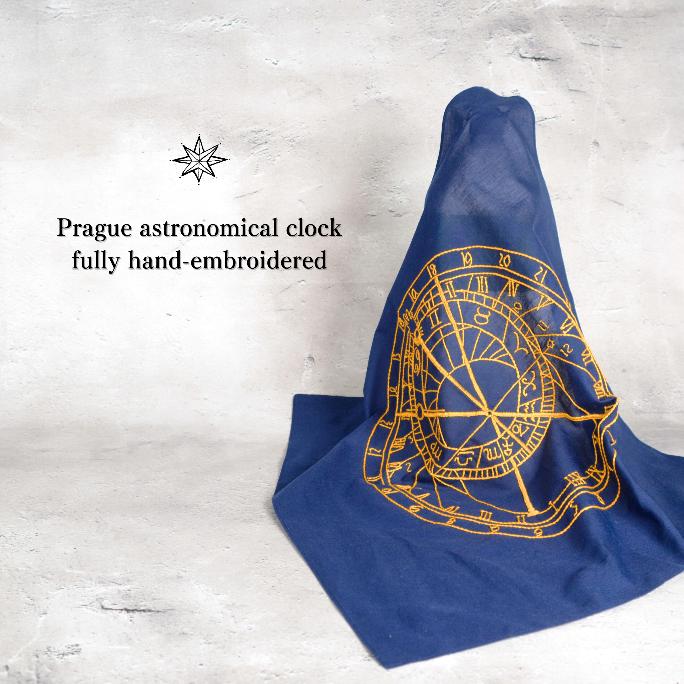 天文時計の刺繍ハンカチ <ネイビー>